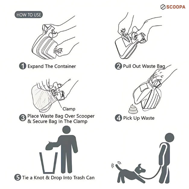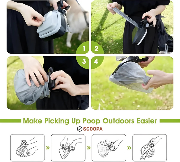 SCOOPA Travel-Ready Pooper Scooper That Clips To Your Leash, Holds Waste Bags And Keeps Hands 100% Clean On Every Walk.